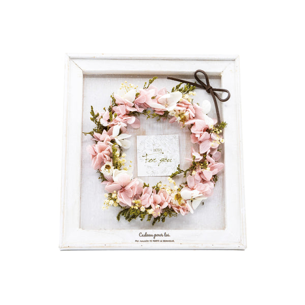アジサイをたっぷり使ったナチュラルな質感のフレームアレンジメント。